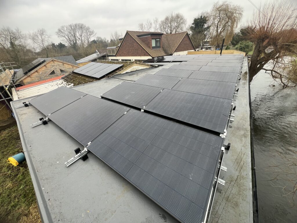- Flat Roof Optimisation – System designed to take advantage of the south-facing orientation and shallow pitch for peak efficiency.